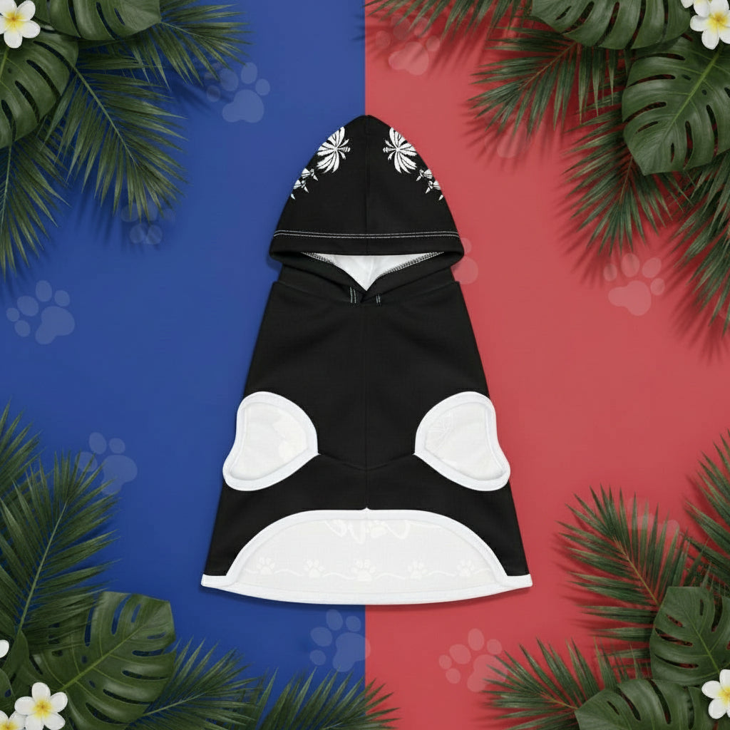 Celebrate Haiti’s culture in every strut! Our Sak Pawse: Love & Heritage Hoodie combines sleek black-and-white style with bold details—Haiti’s coat of arms on the hood and hearts and paw prints on the back. Soft, cozy, and crafted for all-day comfort, it lets your pet showcase pride, love, and heritage wherever they go.