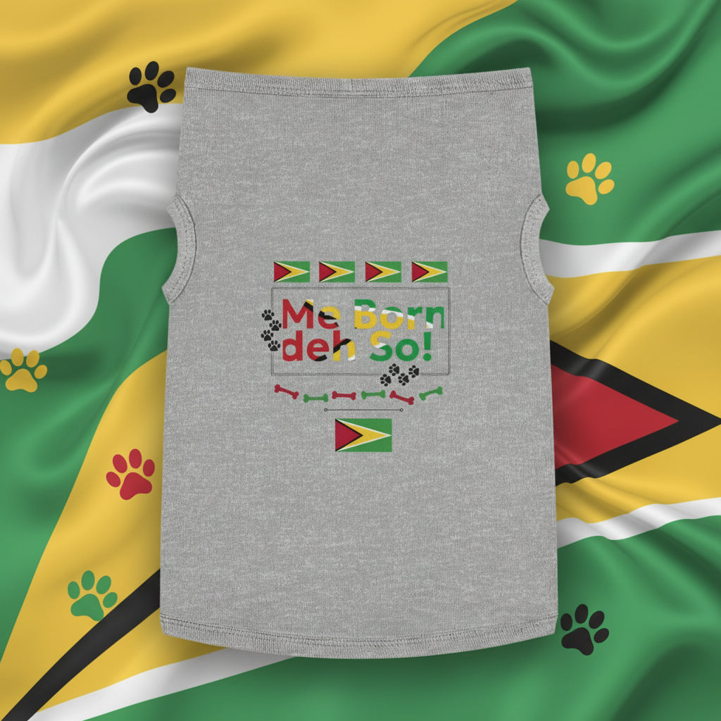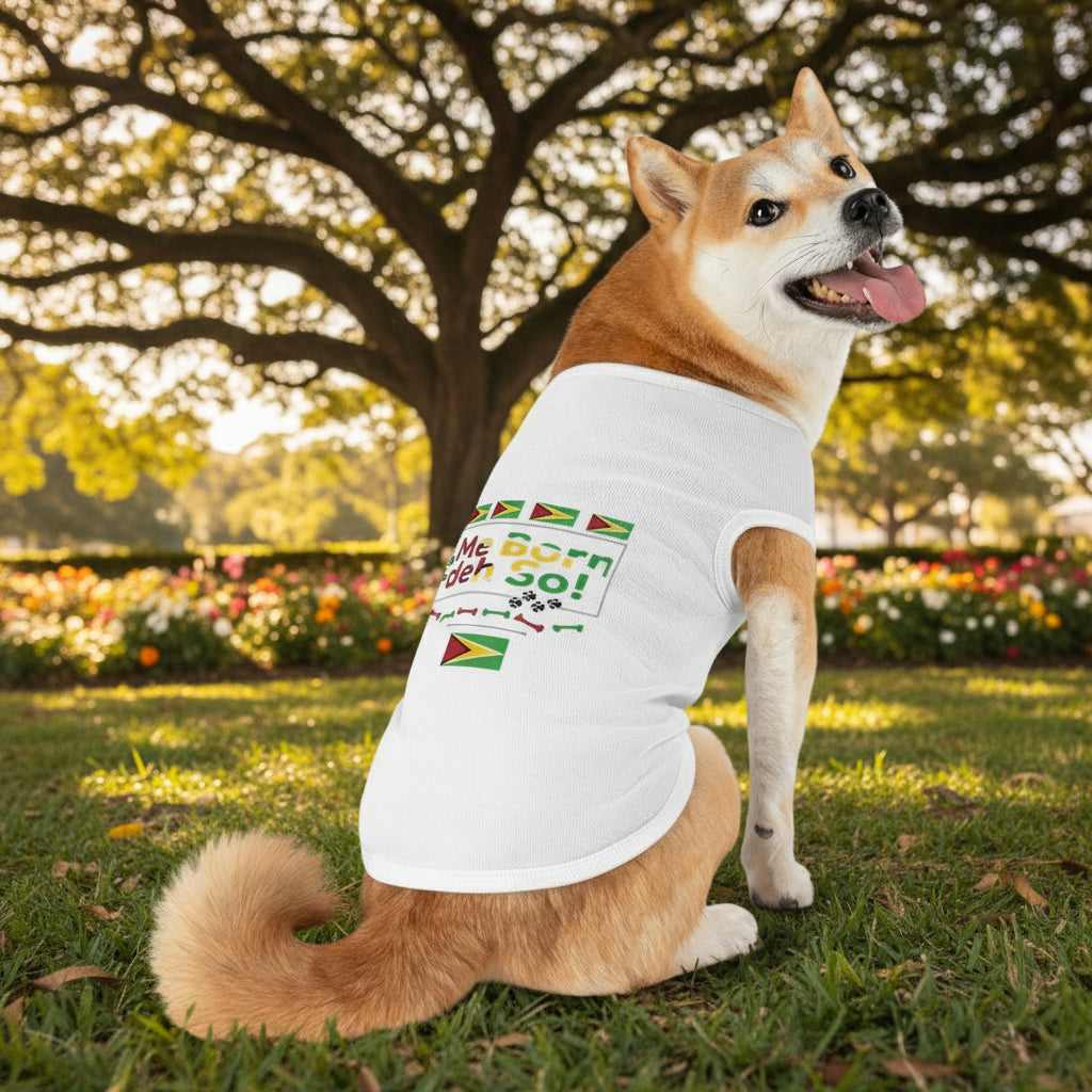 Let your furry friend rep their roots in style with our Me Born Deh So pet tank top! Whether they’re strutting through the neighborhood or chilling at home, this tank is a proud shoutout to island heritage and local pride. Made from soft, breathable fabric with a comfortable stretch, it’s perfect for sunny days, tropical vibes, and bold attitudes.