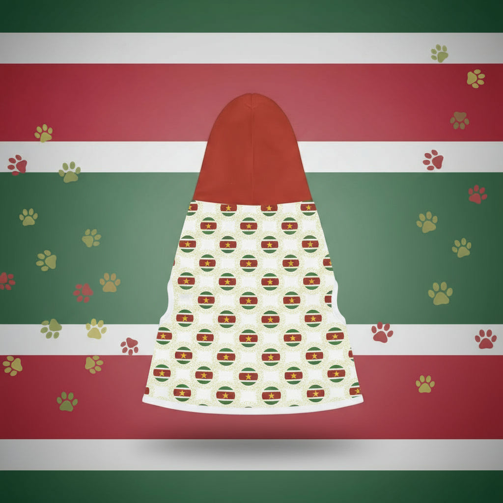 Wrap your pet in pride and purpose with our Paws of Unity Hoodie, a bold tribute to Suriname’s symbol of togetherness. 🇸🇷✨ Designed in rich flag-inspired red with a circle of multi-colored paw prints mirroring the golden star, this hoodie celebrates unity, strength, and cultural love in every stitch. Perfect for cool walks, celebrations, or just reppin’ Suriname in style.