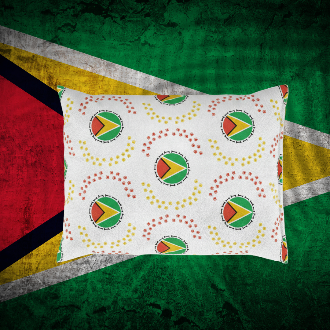 Let your pet wag and rest in true Guyanese style! Our Wag & Rest Guyana pet bed features the iconic Guyana flag in a bold circle, surrounded by playful bones and paw prints on a clean white canvas. It’s cozy, cultural, and crafted for proud pups who nap with national pride. 🇬🇾🐾